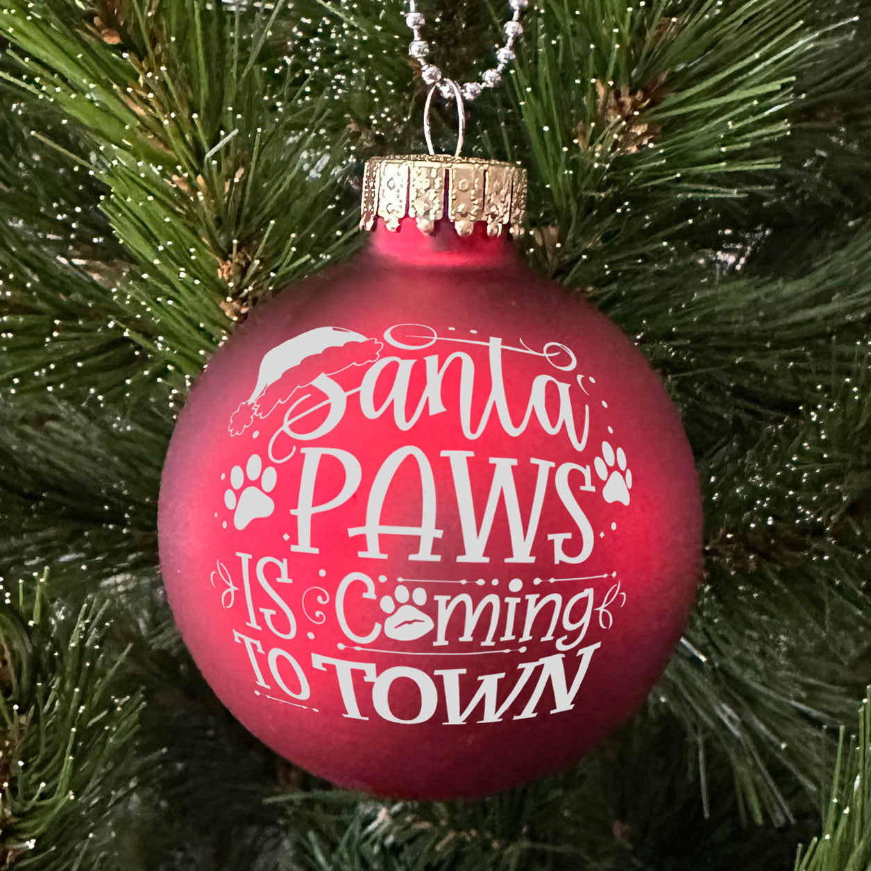 This classic Christmas ornament with engraved "Santa PAWS is coming to town" is ideal for your home decoration. It is available in multiple colours and sizes.